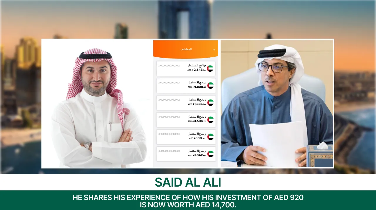 "I invested only 950 AED, and within 5 days my balance exceeded 14,700 AED. The platform team was always by my side and provided me with all the necessary support."